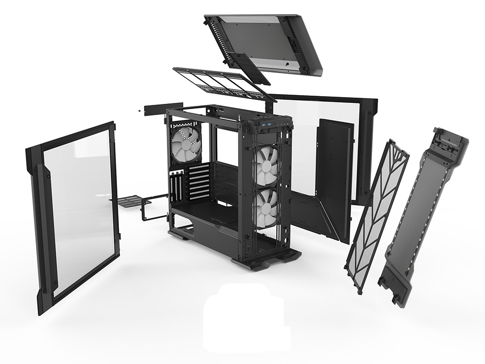 Kích thước 240 mm x 520 mm x 510 mm M 9,45 in x 20,5 in x 20,1 in khung case: Tấm nhôm anodized Khung thép sơn tĩnh điện Tấm kính cường lực 2 bên. Hỗ trợ bo mạch chủ E-ATX, ATX, Micro ATX, Mini ITX Mặt trước I / O 1x USB 3.1 GEN 2 Type-C, 2x USB 3.0, Nút nguồn, Micrô, Tai nghe, Nút Chế độ D-RGB, Nút điều chỉnh led D-RGB